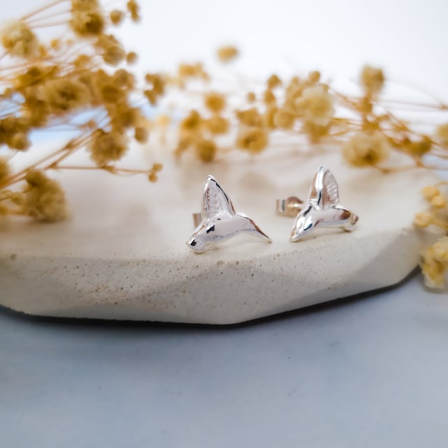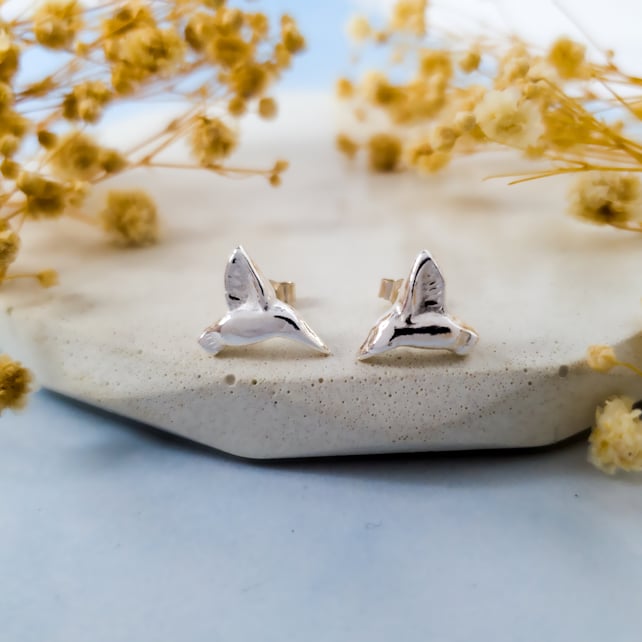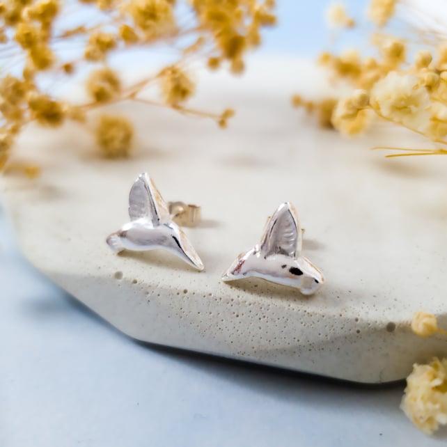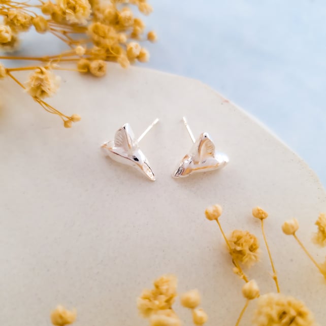 Recycled Silver Hummingbird Stud Earrings - Nature Inspired Bird Earrings