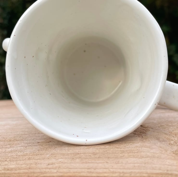 It is made via a mould made from my protected design. It has then been slipcast, finished and fettled by hand and then bisque fired. I then personally glaze each piece myself. They are fired on a 3 pin stilt and you will see the discreet pin marks on the base as featured in the last photograph.