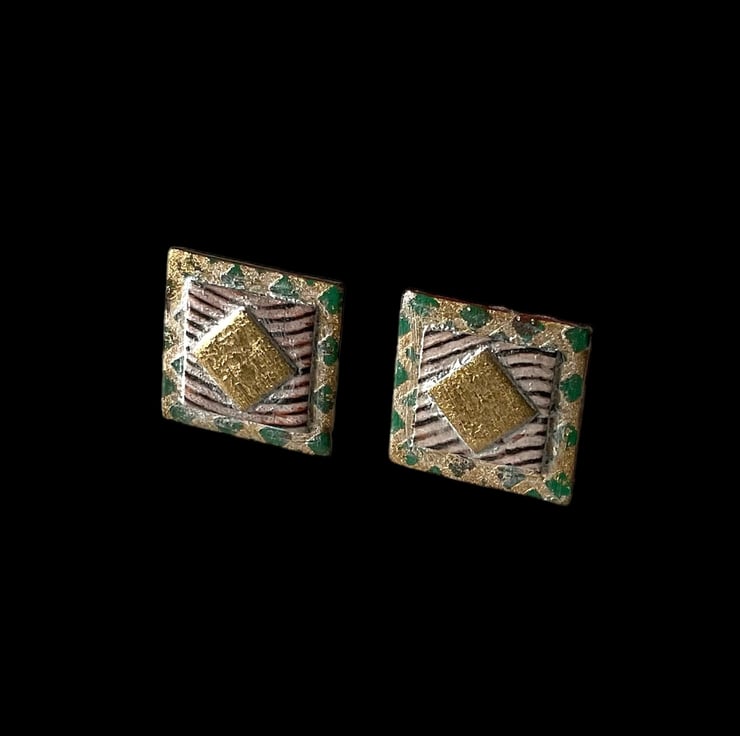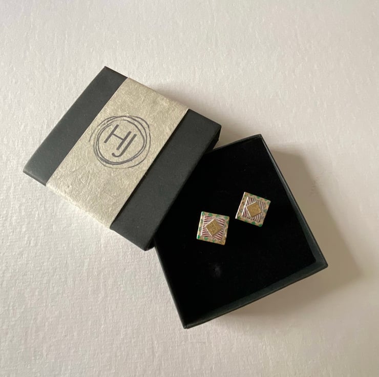 Much of my work is inspired by travel and these little studs have been influenced by the mosaic architecture in Egypt and the Middle East.