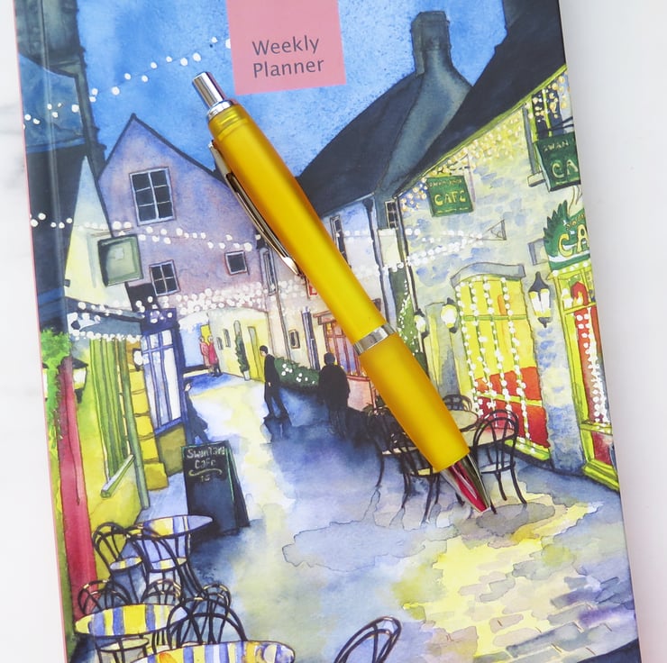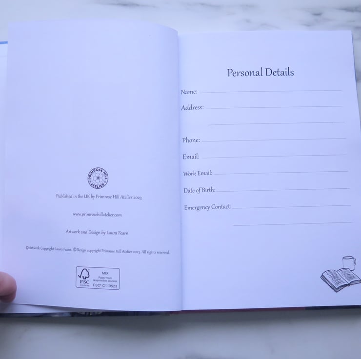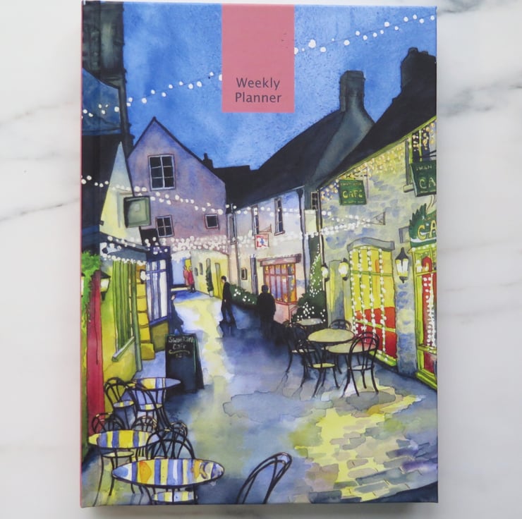 Primrose Hill Atelier offers a range of high quality notebooks and planners. All our products are inspired by the West Country. Laura Fearn is an artist and illustrator with a studio on Primrose Hill in Bath. The products are printed in the UK, made with FSC certified paper. The 'Fairy Lights- Swanyard' is an A5 hard cover planner. Dates are left blank (53 weeks), also includes a sections for notes, birthdays, important dates. We have added some questions to make you think; 'Bucket List', 'Things that make me smile', 'Things that make me scream', 'Favourite Quotes' - because we all love a list and what could be better than daydreaming on a rainy afternoon with a cup of tea, contemplating some of these questions?