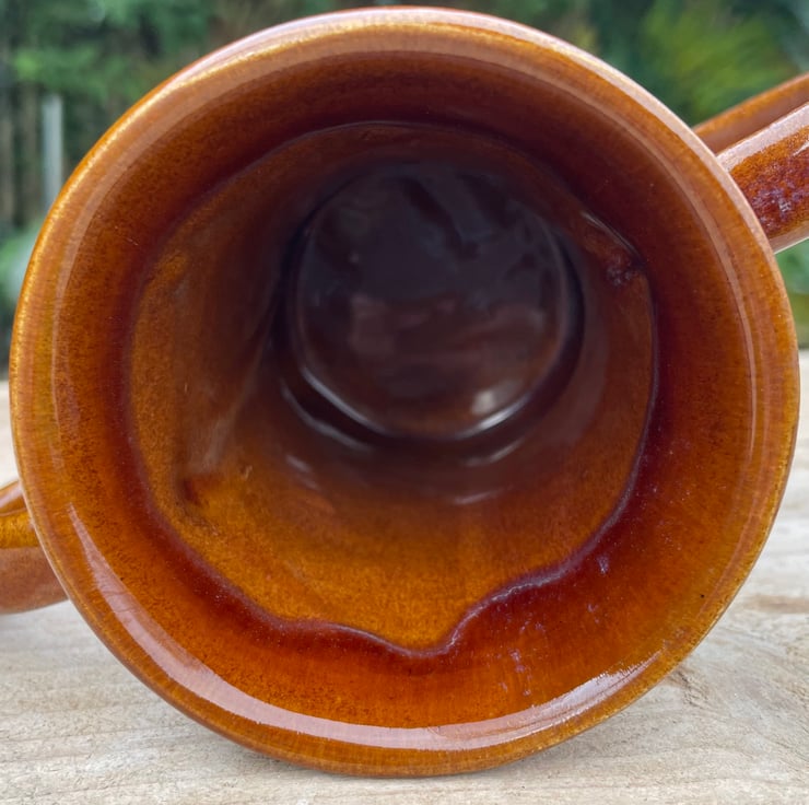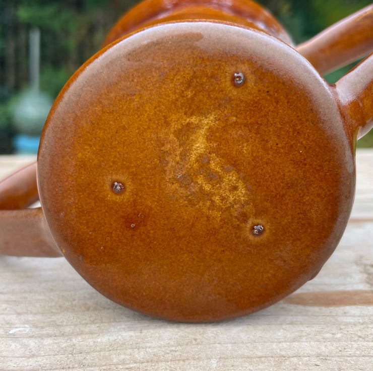 It is made via a mould made from my protected design. It has then been slipcast, finished and fettled by hand and then bisque fired. I then personally glaze each piece myself. They are fired on a 3 pin stilt and you will see the discreet pin marks on the base as featured in the last photograph.