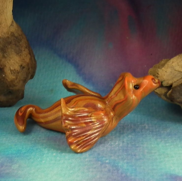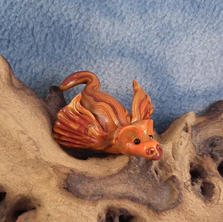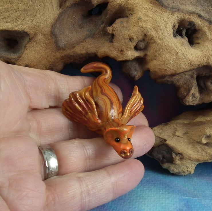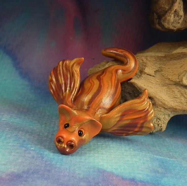 A 'one of a kind' creation having been entirely handmade without the use of moulds here at my studio on the Sussex Coast. Modelled with artist blend polymers before sealing with lacquer, Fiaro is two inches from snout to tail ...