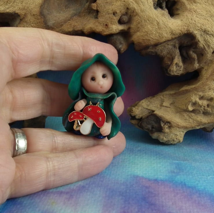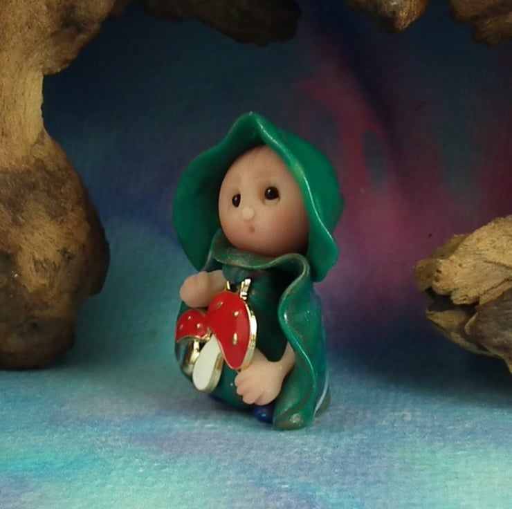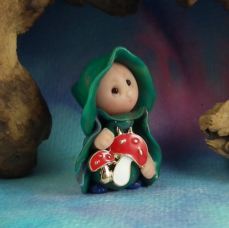 Reeba is a tiny Garden Gnome with toadstool embellishments ...