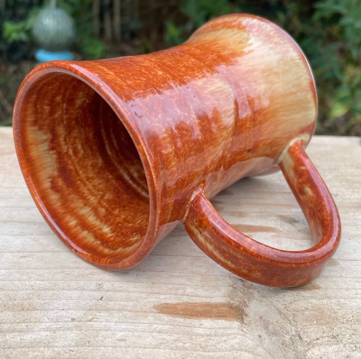 This is a hand thrown stoneware mug.
