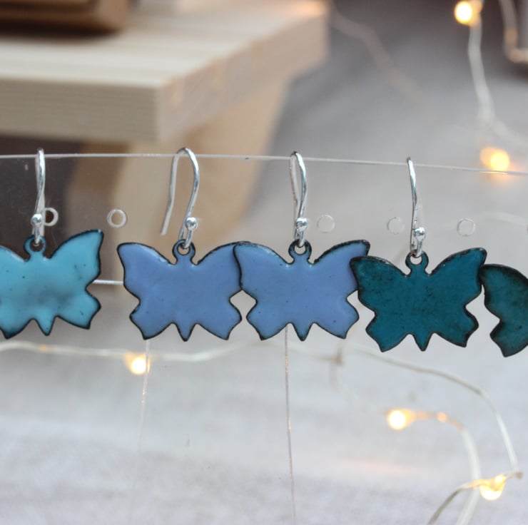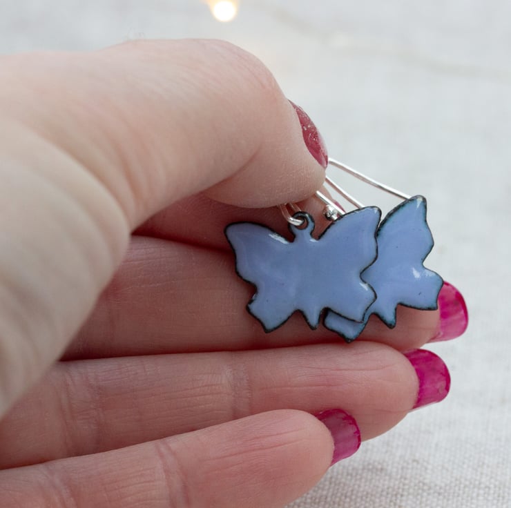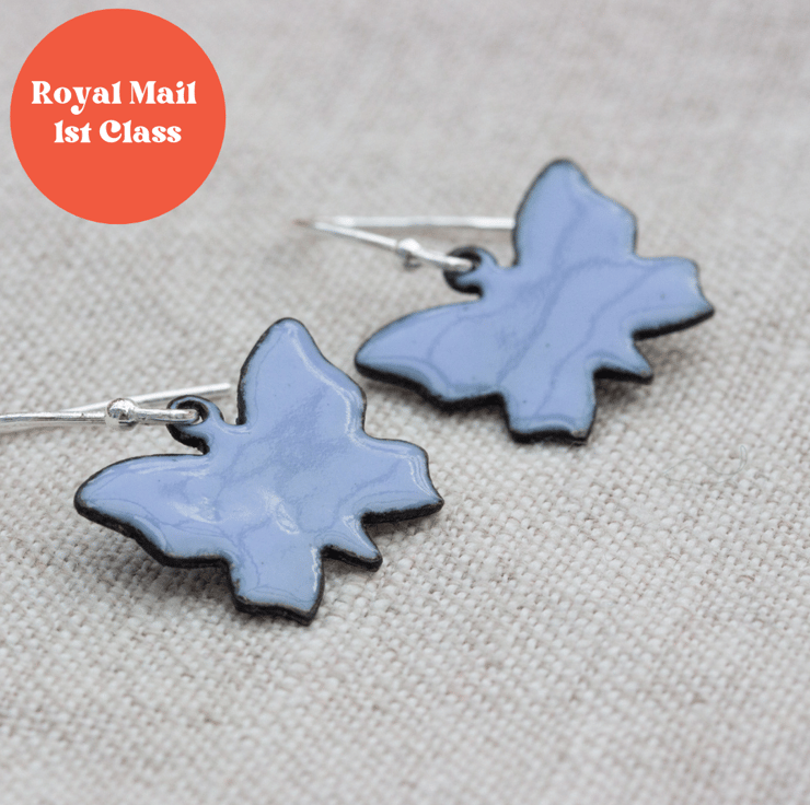 These mauve/blue enamel butterly earrings would make a lovely birthday or Christmas gift.