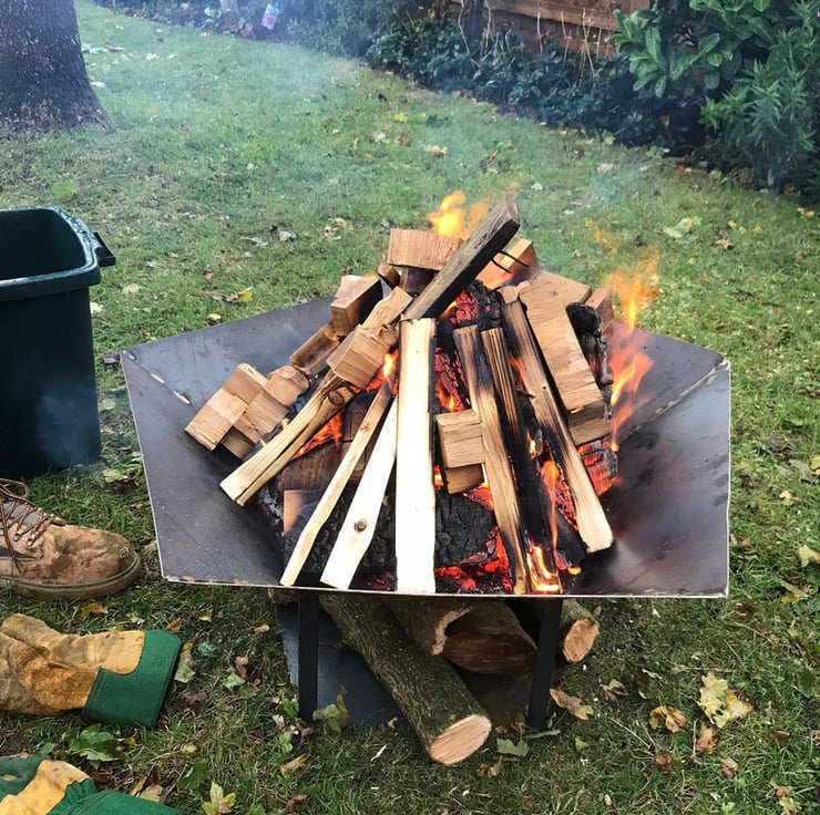This design is suitable for burning cut logs on a long burn; great for a cosy night around a fire in the outdoors!