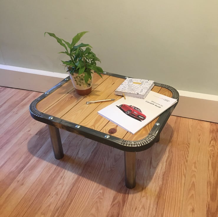 This eco-friendly coffee table is made from high-quality, locally sourced pinewood. It is perfect to use for entertaining guests or a leisurely coffee break. Its modern, industrial chic design is highlighted through the authentic origins of the wood which are evident in the final piece.