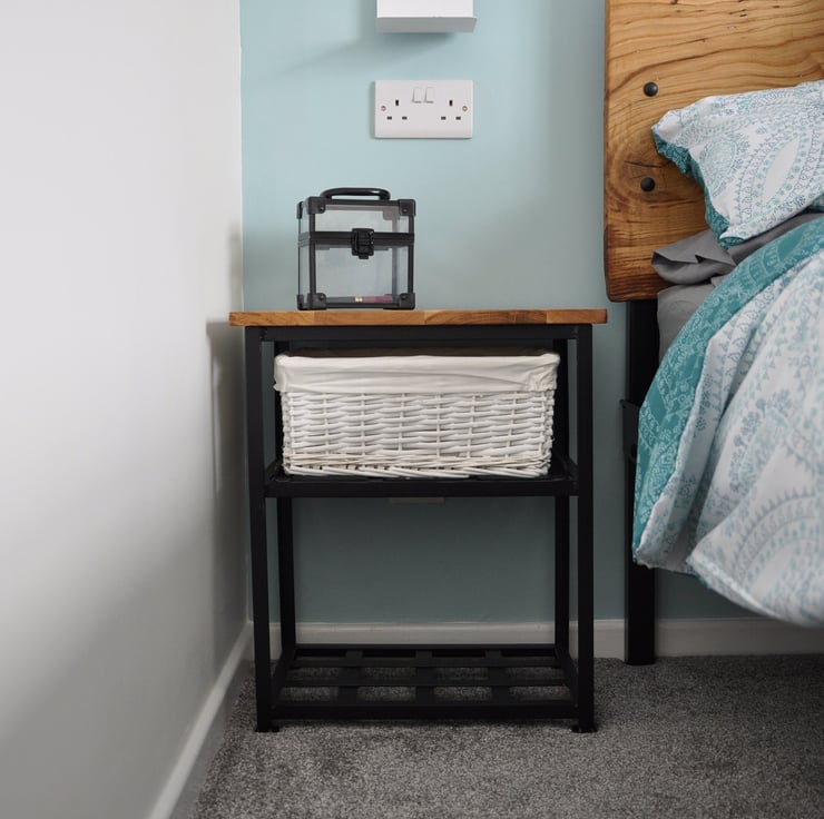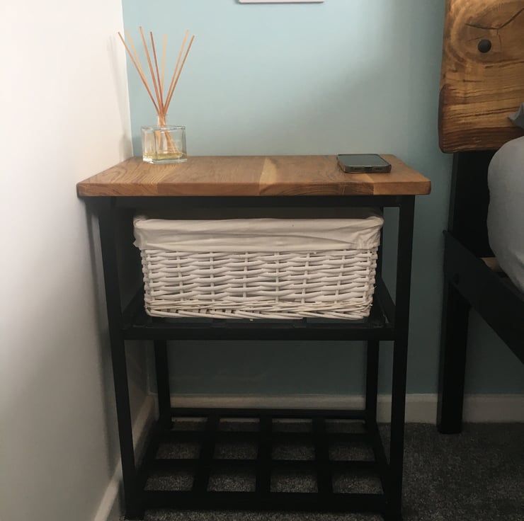 Each cabinet is fitted with an easy to pull out white basketware drawer and has a slatted steel smooth black enamel shelf for your slippers and bedtime books!