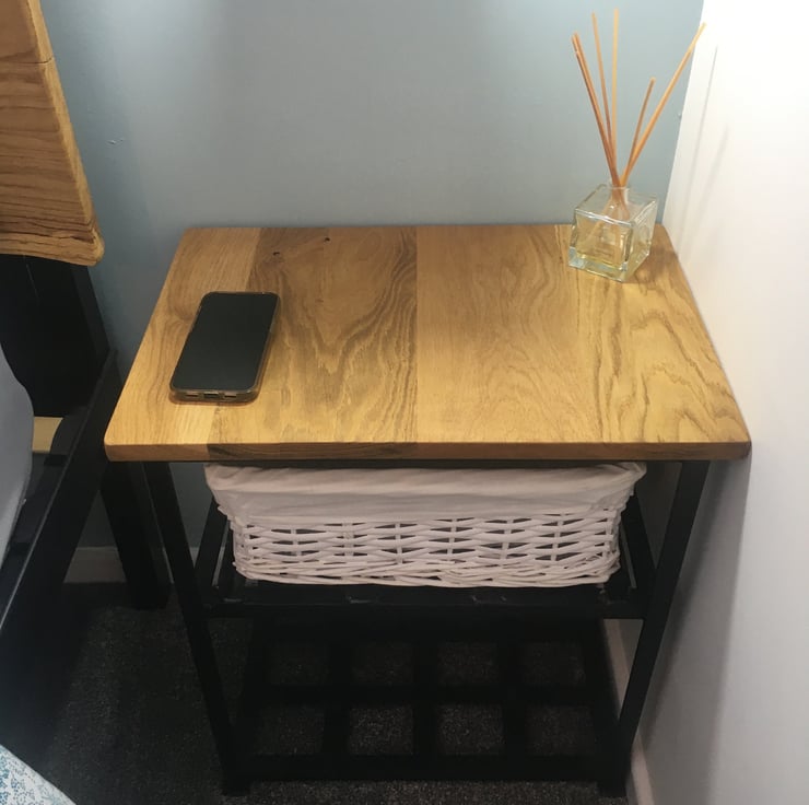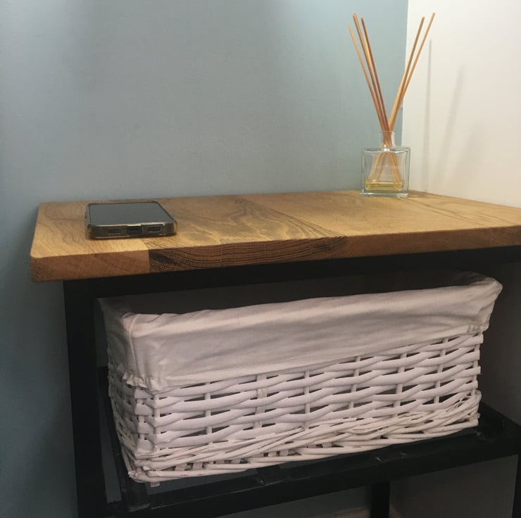 This stunning cabinet is handcrafted from locally-sourced oak and steel. The authentic origins of the oak are visible in the final design, which gives a rustic, country look; equally, it would suit an urban home with its contemporary industrial design. The table is useful for placing books or drinks on and also has a two-tier steel rack underneath, perfect for storing your slippers or wicker basket.