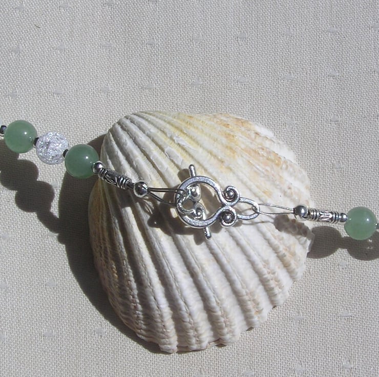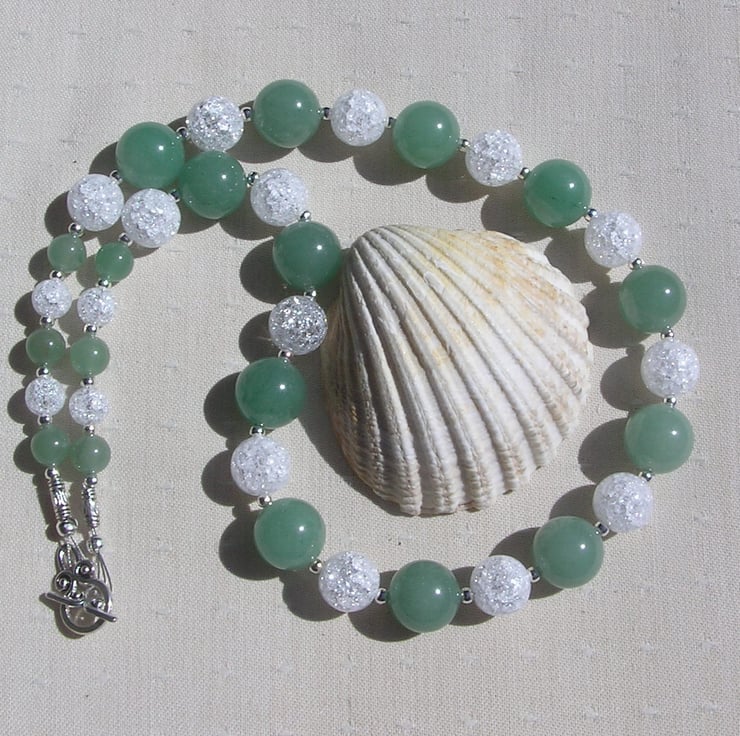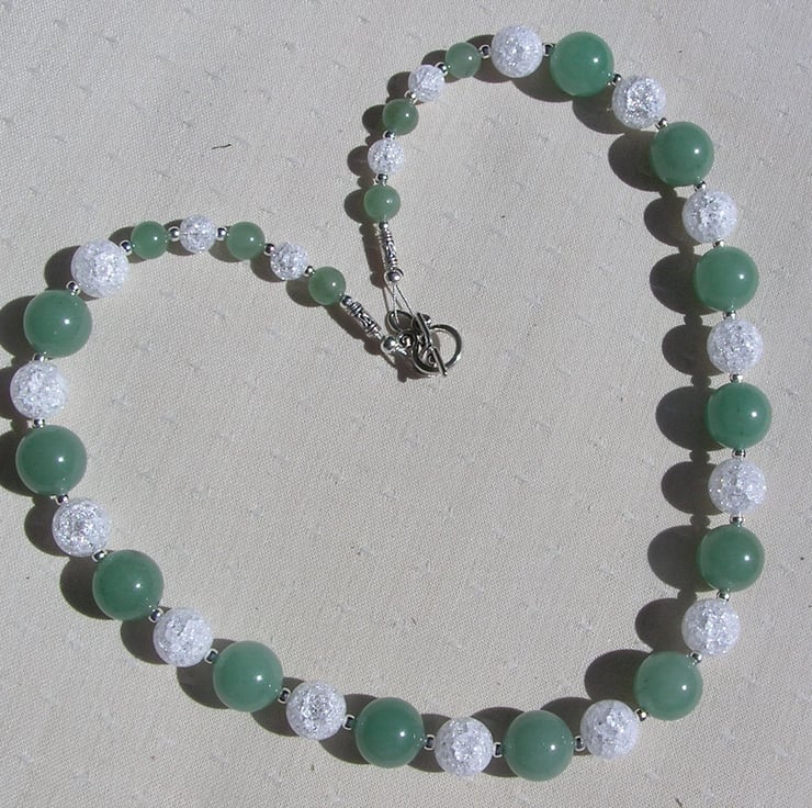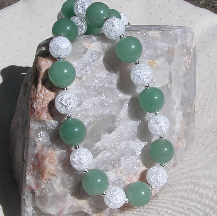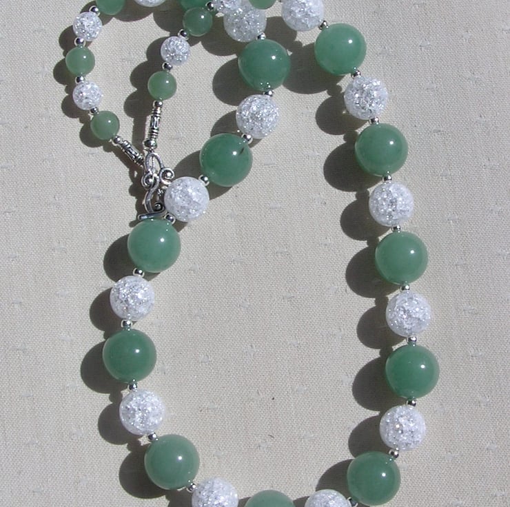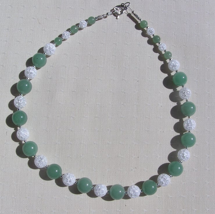 This Stunning Sumptuous Necklace is made from alternating Green Aventurine and Crackled Clear Quartz chunky round beads and for that added extra sparkle tiny Silver spacer beads - a Gorgeous Cool combination that will look stunning either worn casually or with something more Elegant for a Special Evening out