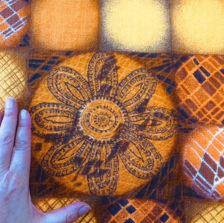 Bold Orange Mid Century Circles Flower 50s 60s Barkcloth vintage fabric Lampshade option - A bold feature in either a modern or retro setting.