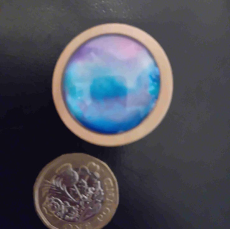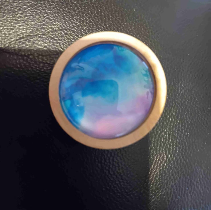Wooden and glass designed by me using alcohol inks on yupo paper creating one of a kind brooch.
