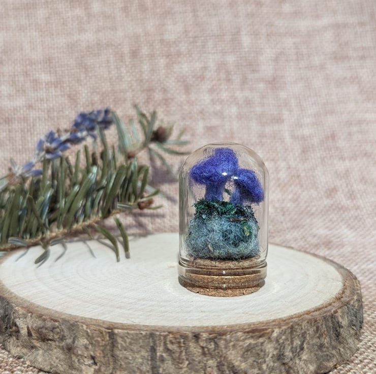 The miniature toadstool is created using the needle felting technique. This binds the fibres together using a barbed needle and a steady hand.