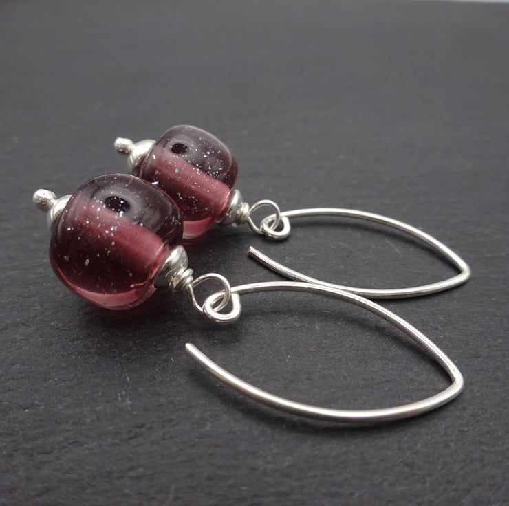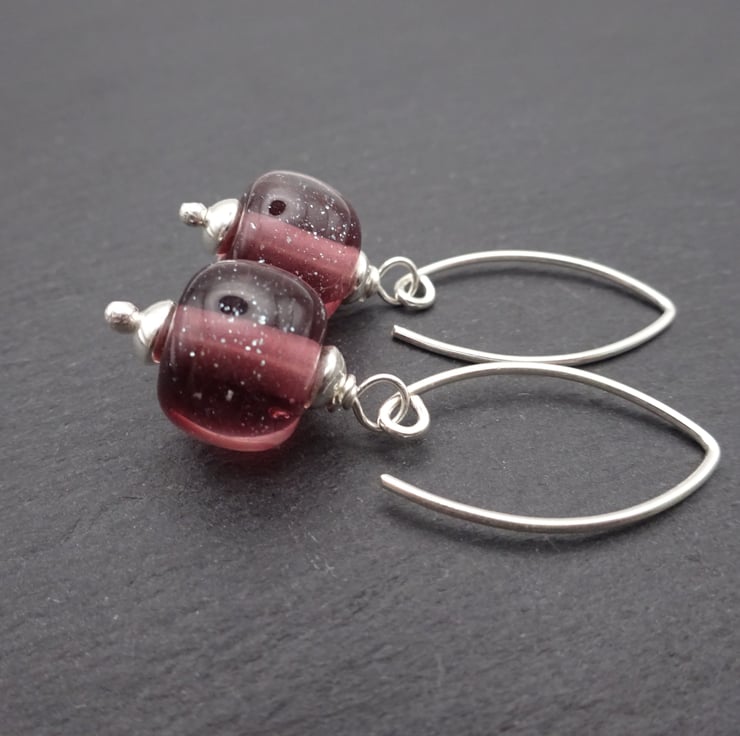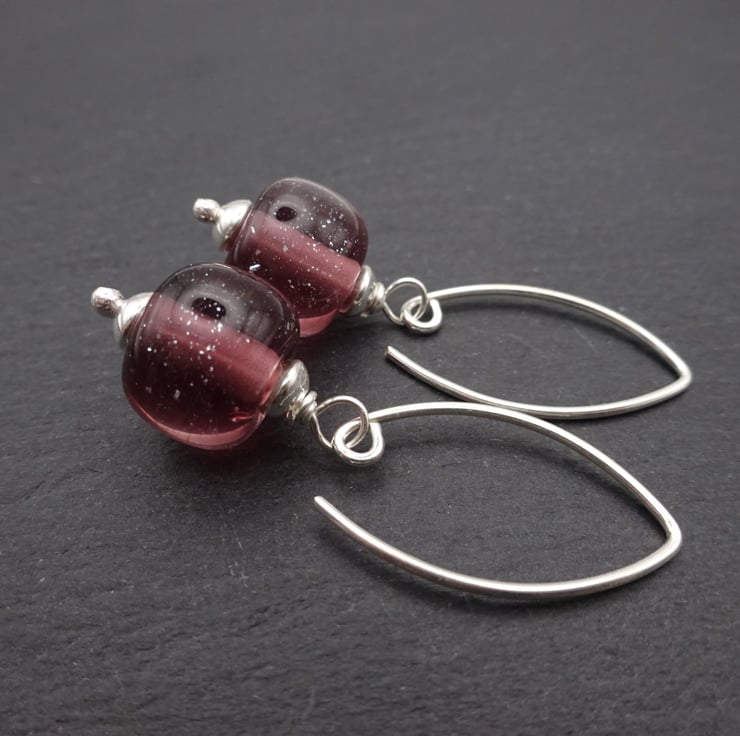 The lampwork beads have been handmade by me using purple glass with subtle glints of glitter in.