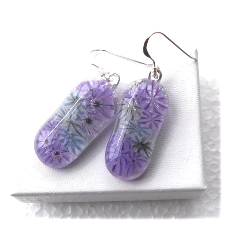 The earrings are hung from silver plated bails and then sterling silver hooks, the bails being securely glued in place to the back of the glass with the best glue available E6000..