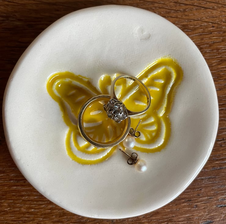 This is my butterfly embossed ceramic dish - perfect for jewellery, a small soap, trinkets or little treasures.