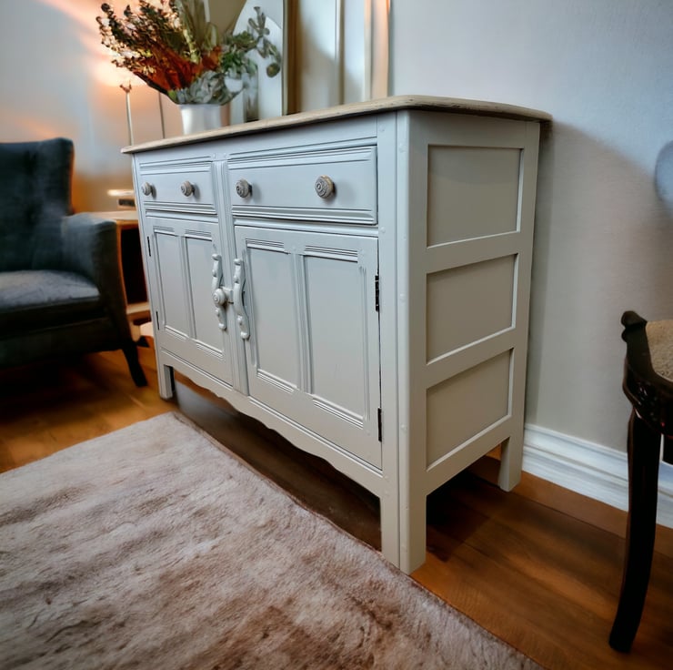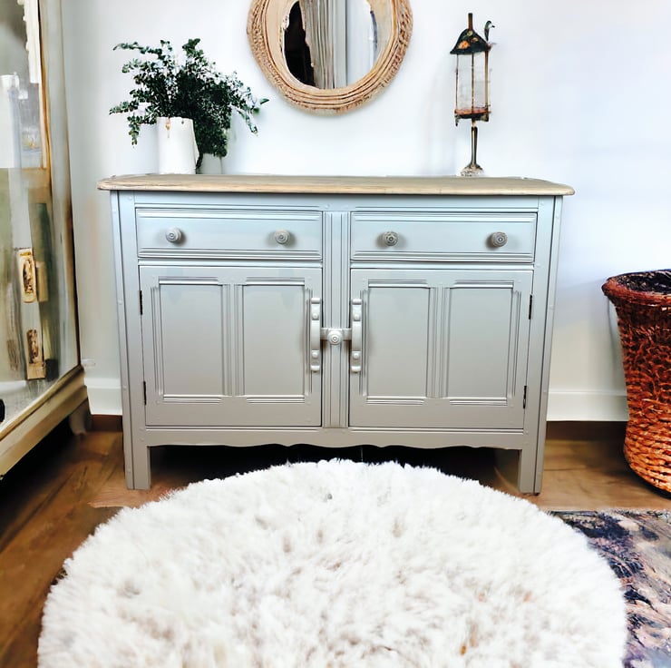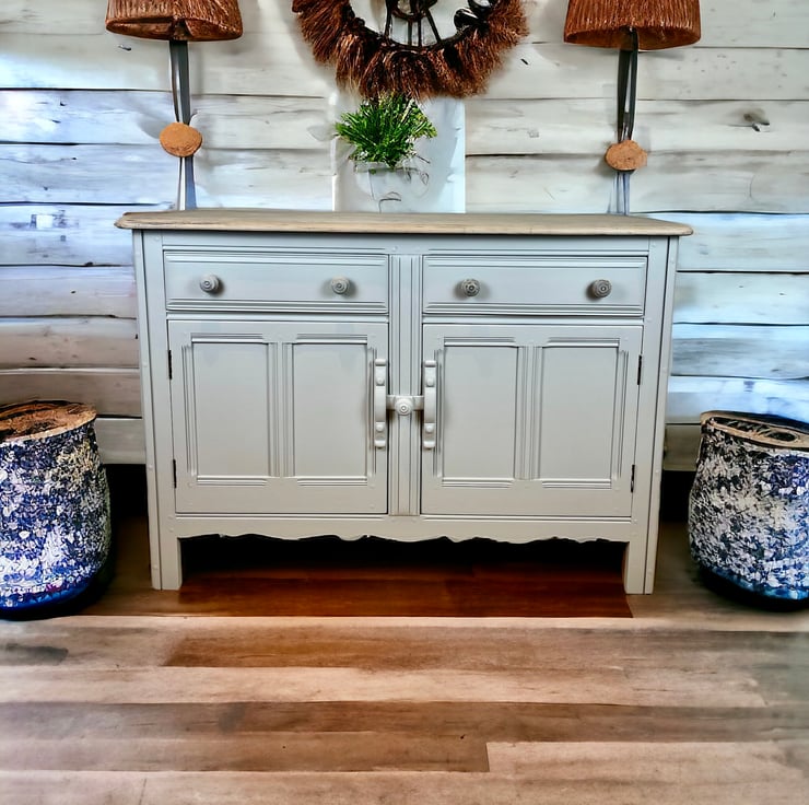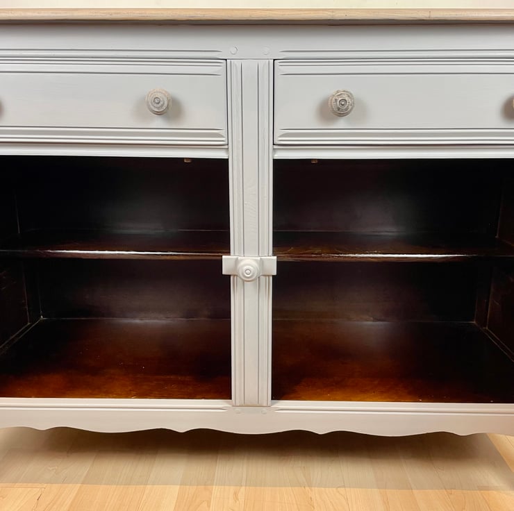 Hand Painted in Fusion Mineral Paint light grey and finished with soft wax .