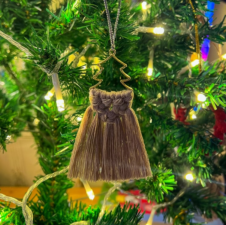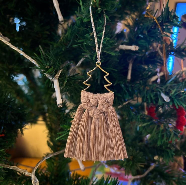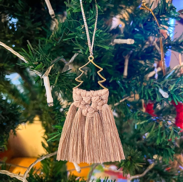 Decorate your tree with these boho macrame decorations in white accented with gold colour tree pendant.