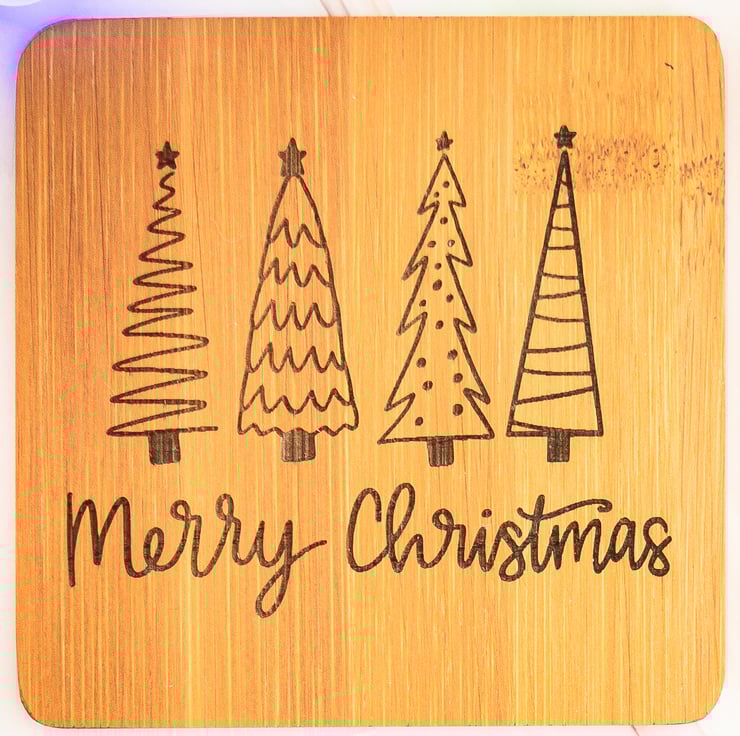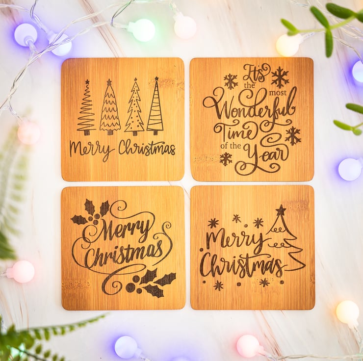 Gorgeous handcrafted solid bamboo coasters with joyful laser engraved designs to get you in the mood for Christmas! The set comes in an eco-friendly gift box with eco ribbon and bow! Leave any gift message in your Note to Seller when you checkout. We will add your message onto the box and send directly to the recipient for you!