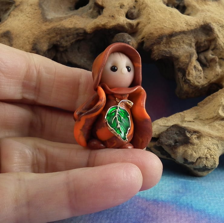 Fernie is a tiny Garden Gnome with leaf embellishment ...