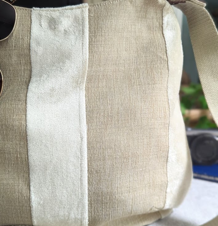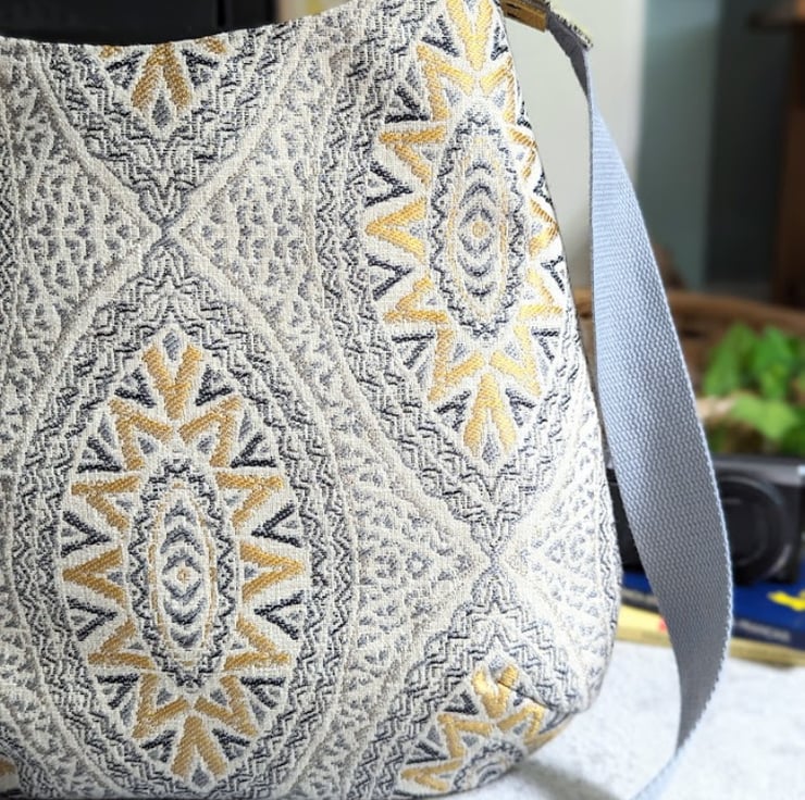 Handmade using offcuts of woven soft furnishing fabrics and lined with hard-wearing polyester cotton, this casual bag has a fab boho feel with stylish simple lines.