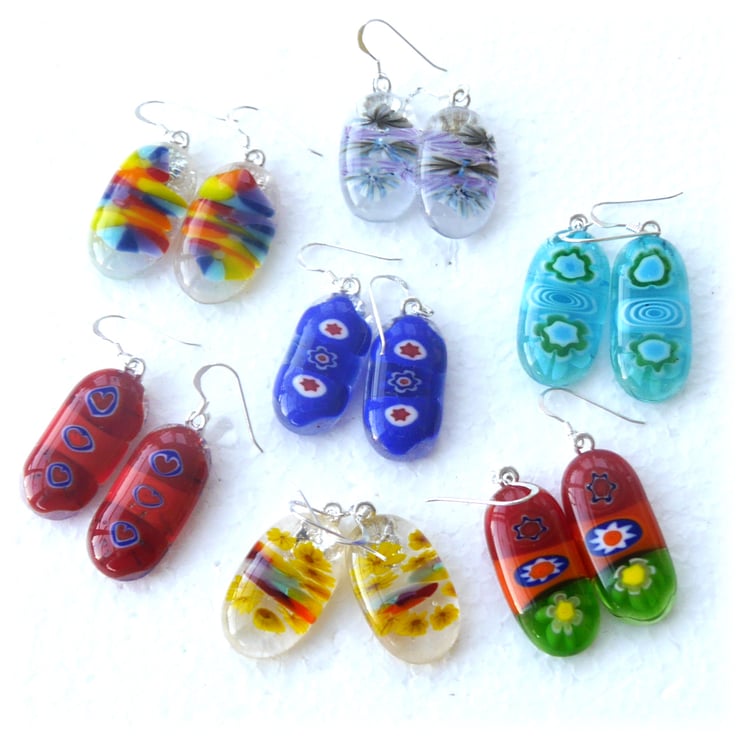 They comprise 2 layers of carefully handcut clear bullseye glass with the top layer pretty millefiori flowery glass slices.
