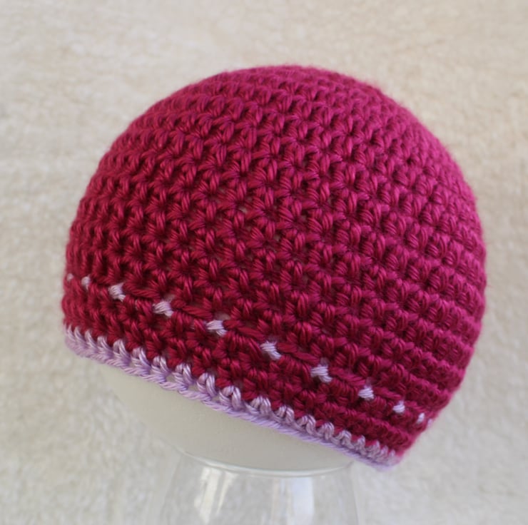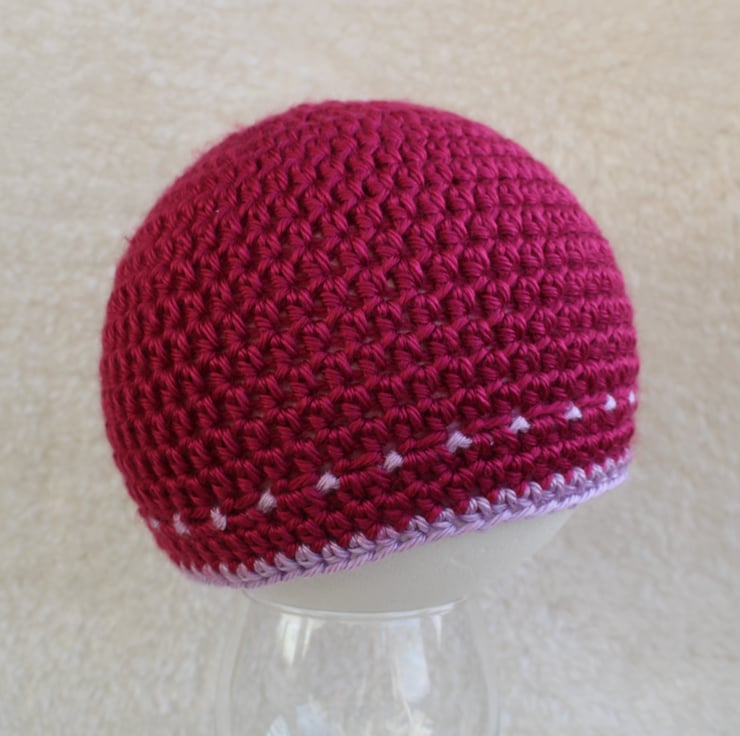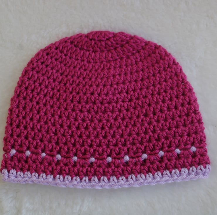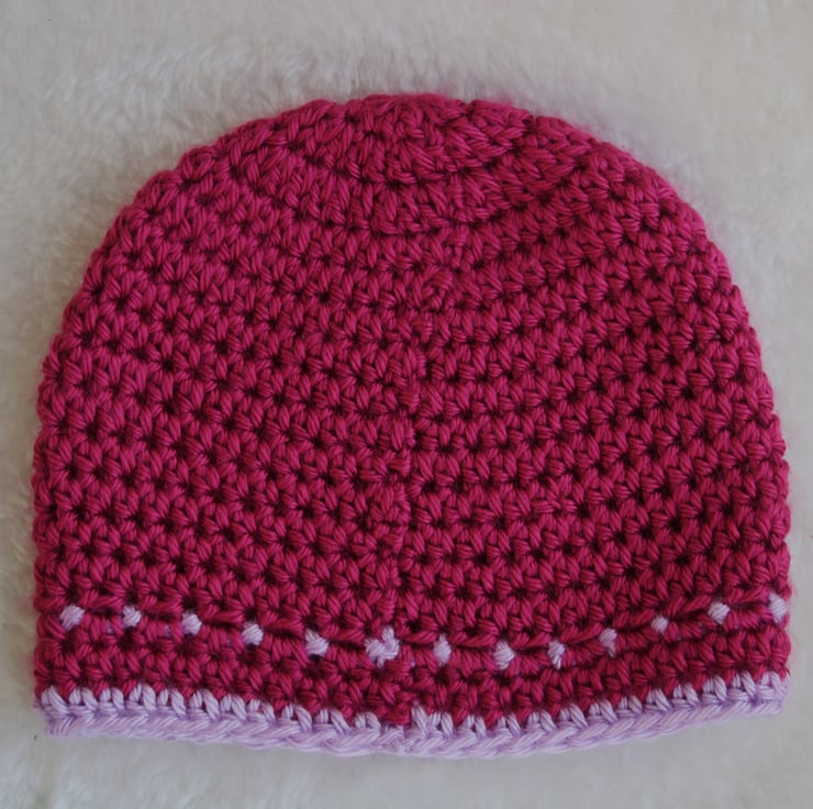 A sweet and simple baby beanie hat perfect for keeping little heads toasty and warm when out and about.