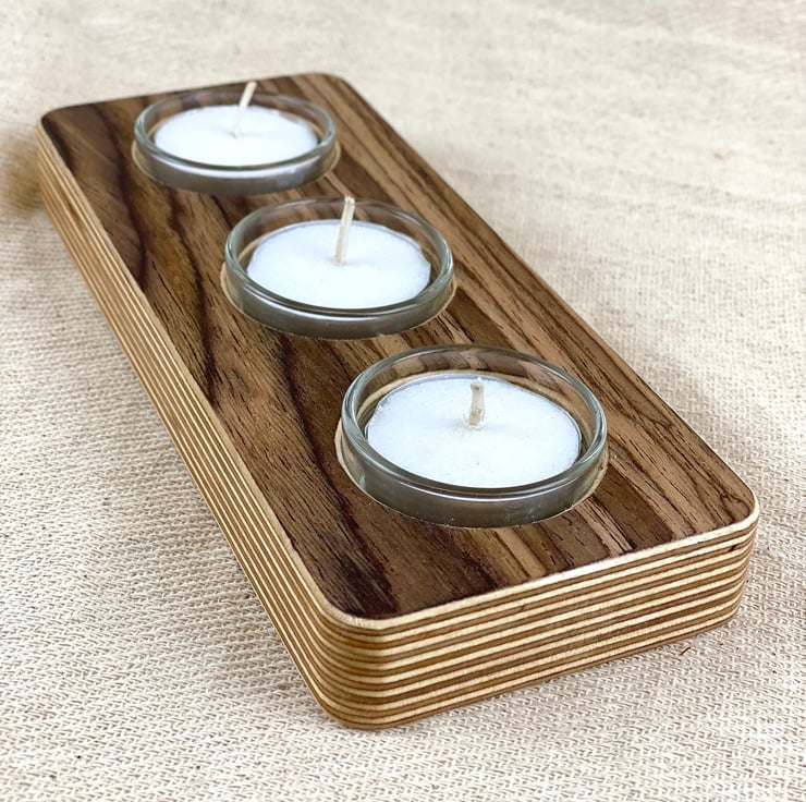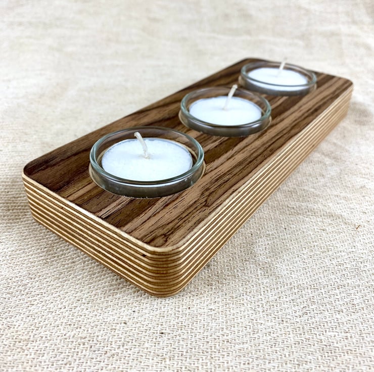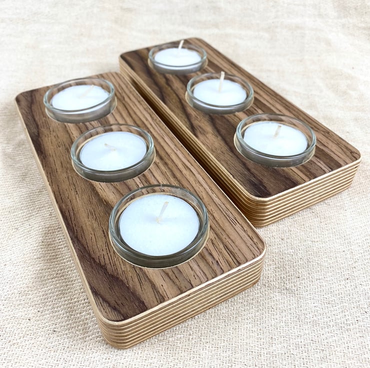 Enjoy the warm glow of sophistication with our fine wood veneer tea lights.