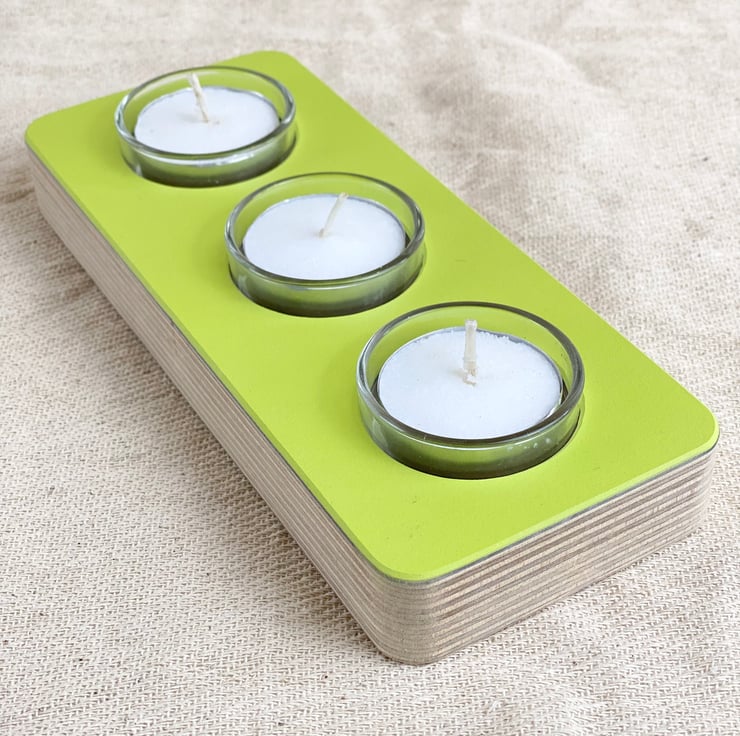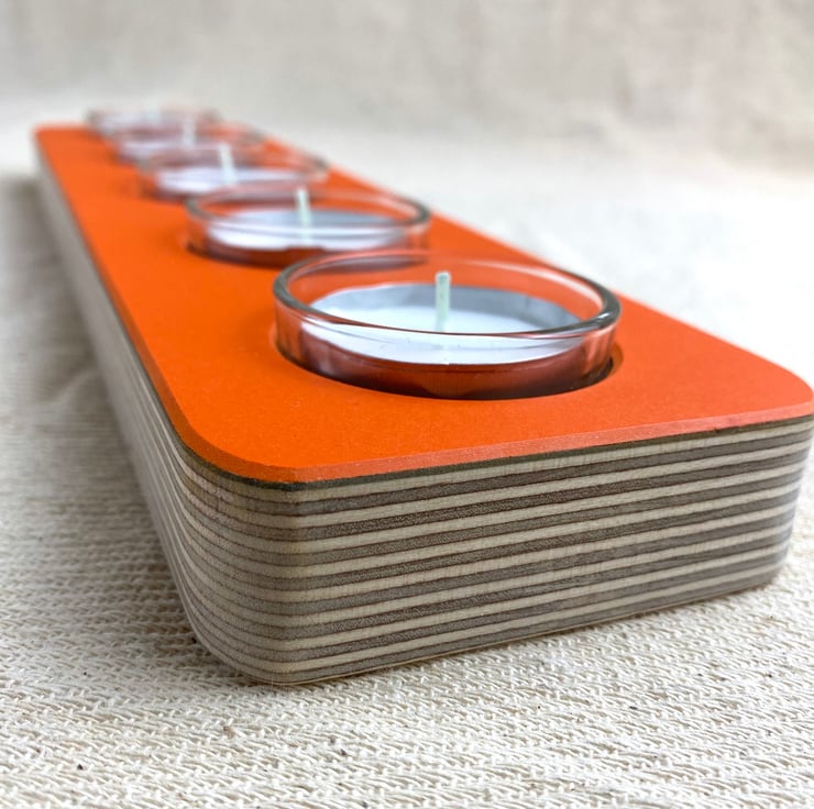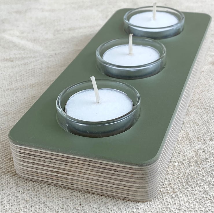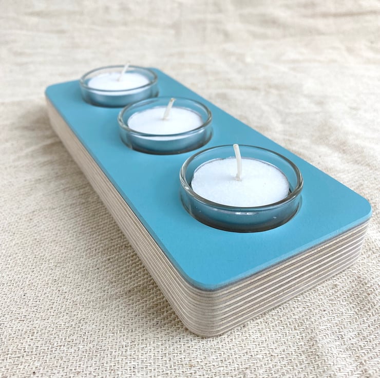 Illuminate your surroundings with our birch plywood and glass tea lights. Beautifully crafted and finished with furniture linoleum.