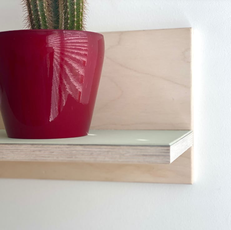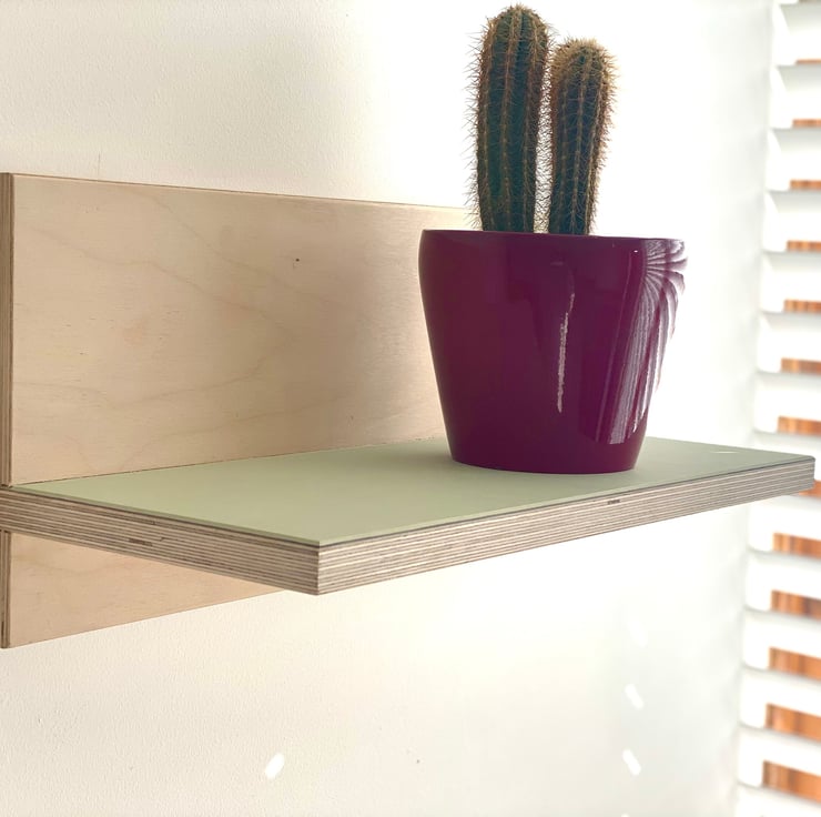 Our simple yet elegant floating shelf is designed using good quality birch ply which shows the beautiful grain and ply layers. It is available in its raw and natural state or in an array of different furniture linoleum colours that look truly outstanding. The ply is finished in high quality Osmo raw oil which protects the wooden surfaces from staining and spills, providing durable protection, while ensuring the shelf retains the natural and pale look of raw birch ply, with its attractive, subtle graining.