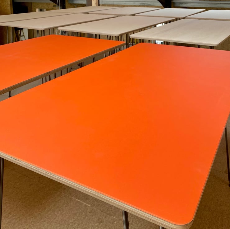 The tables can be left with a square edge finish or with rounded corners and a small underneath chamfer as per photos.