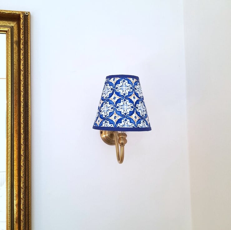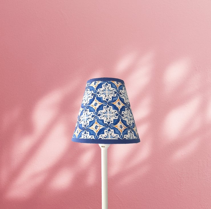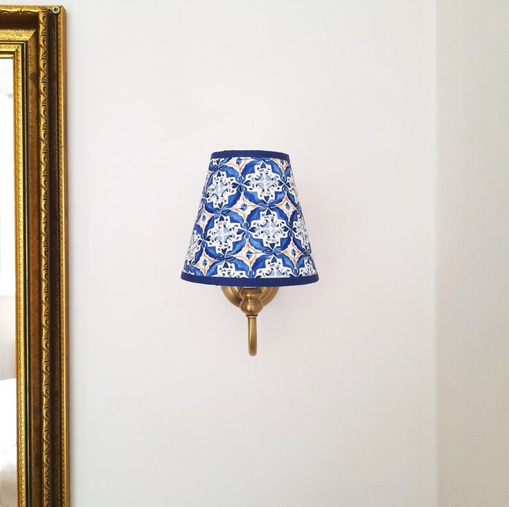 Gorgeous Blue Mediterranean Tiles pattern lampshade. This beautiful design is ideal to enhance the look of any room in the house, B&B, hotel, or business! Perfect to use as wall lights, table/desktop small lamps and chandeliers.