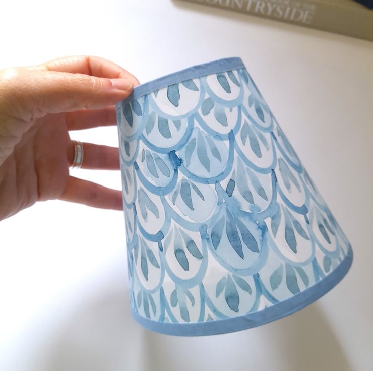 Unique lampshade made in blue watercolour fish scales pattern with light blue edges. This playful design is ideal to enhance the look of any room in the house, B&B, hotel, or business! Perfect to use as wall lights, table/desktop small lamps and chandeliers.
