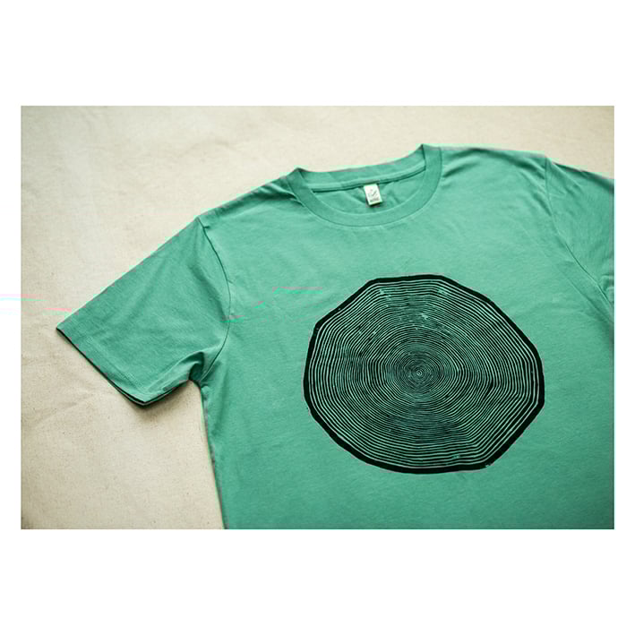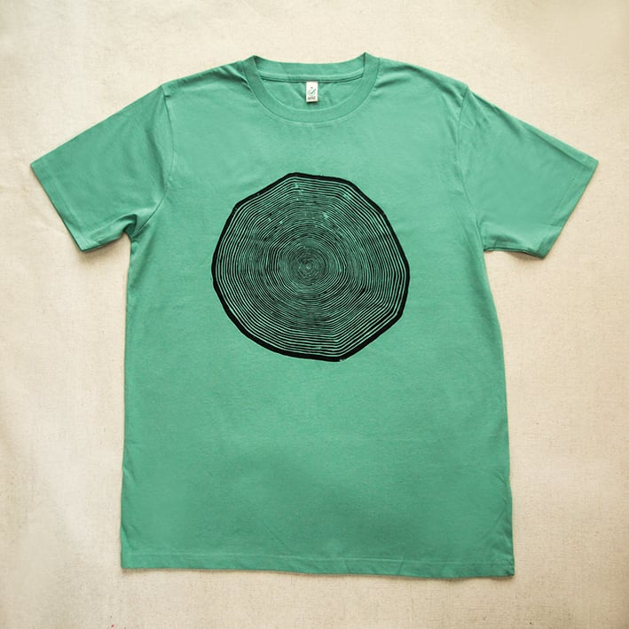 "FIFTY YEAR" print in T-Shirt form. Original print is loosely based on a cross section of a fifty year old tree... perfect present for people with a significant birthday coming up, tree lovers, or anyone who likes a good t-shirt design!