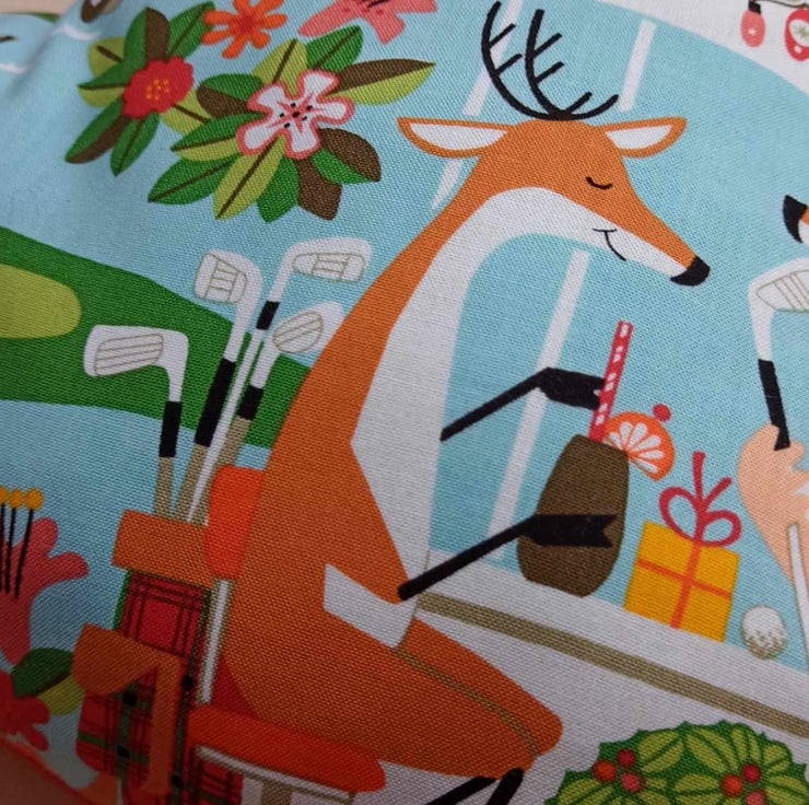 NOTE: the remaining fabric has Santa playing golf in a tartan hat, as well as in the bar with the reindeer - see photos 2, 3 and 4 for closeups.