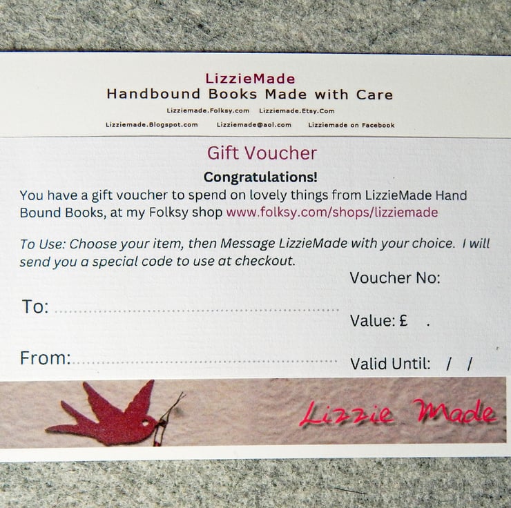- Vouchers are redeemable for items in my LizzieMade shop and their associated package and posting costs.