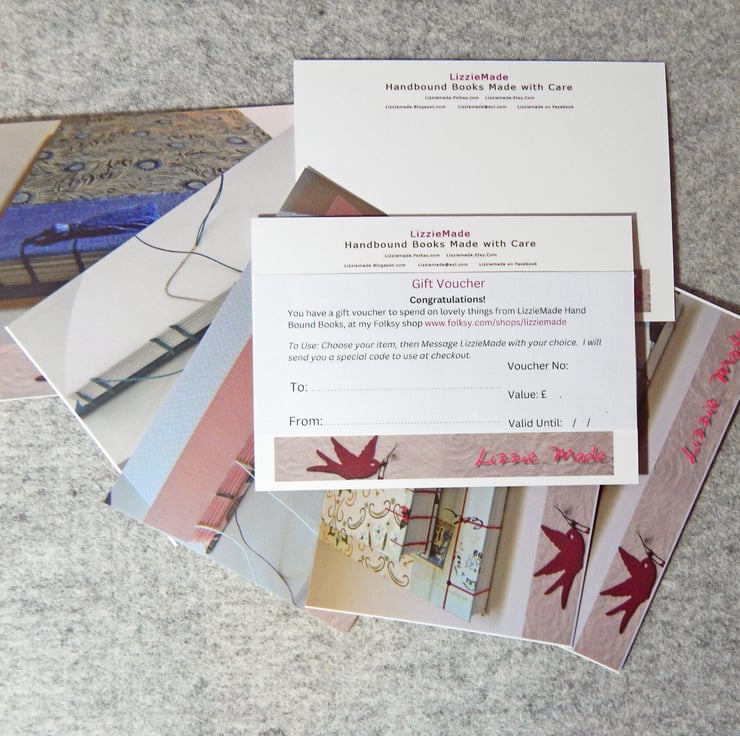 - To use their voucher, the recipient makes their selection from my shop and sends me the details by using the 'Contact' button in my shop, or using the email address on the voucher.