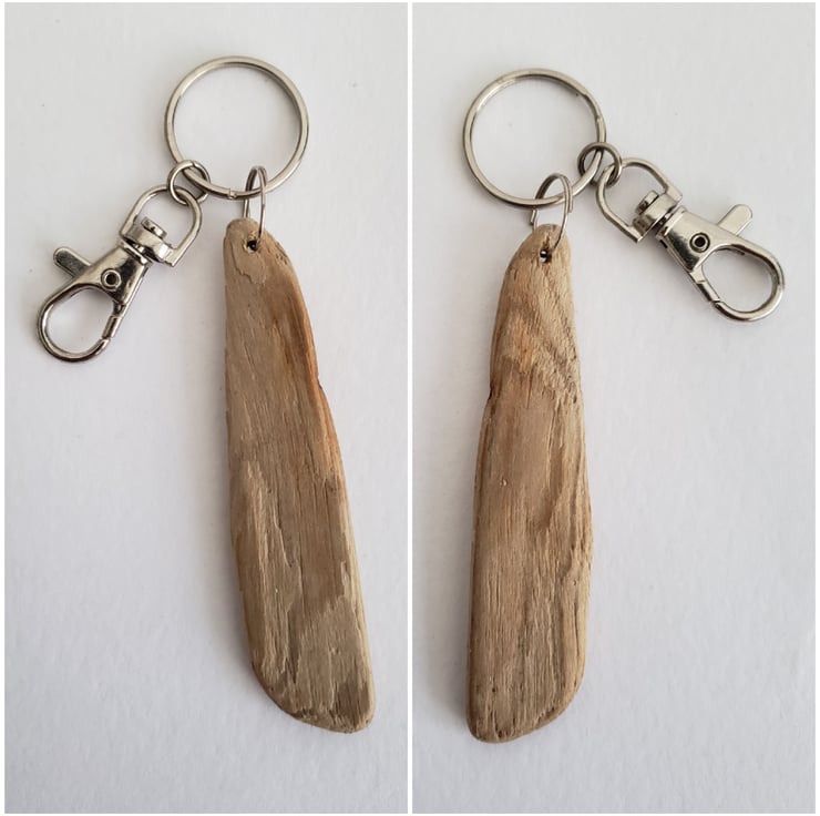 Driftwood keyring. This piece of driftwood from the Jurassic Coast has been waxed and polished to create a lovely tactile Keychain. The wood has been drilled and attached to a silver Keychain that also includes a clip so can be attached to a bag, trousers etc or add your keys here for quick removal.