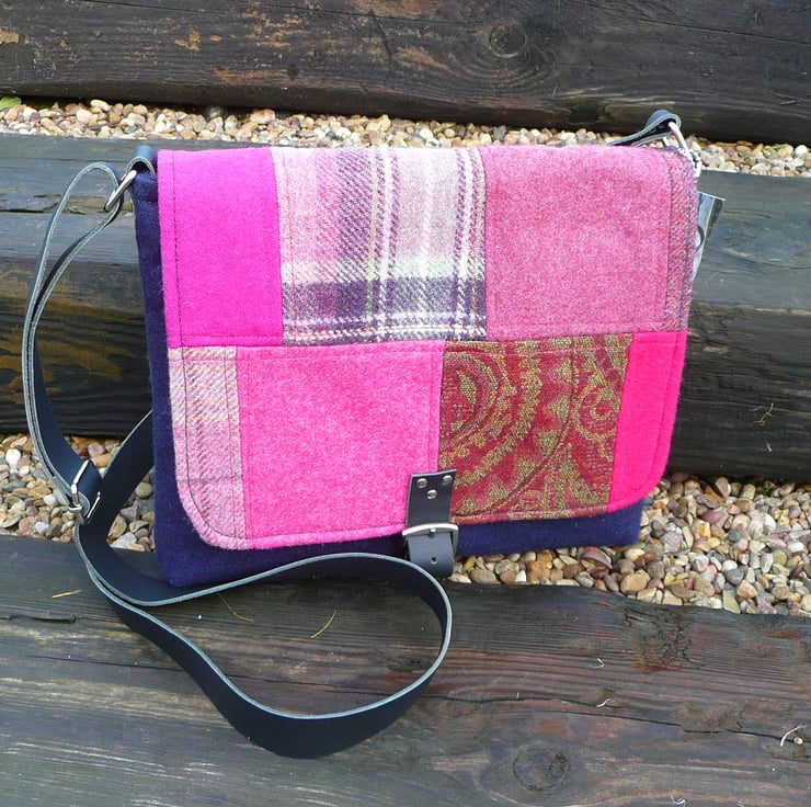 Crossbody bag pink patchwork british wool tweed shoulder bag handbag