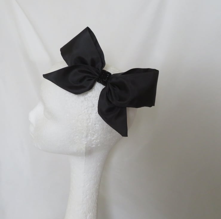 Finished with a black glitter elastic centre and attached into the hair with a small metal slide clip across the back.