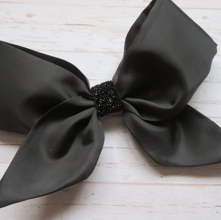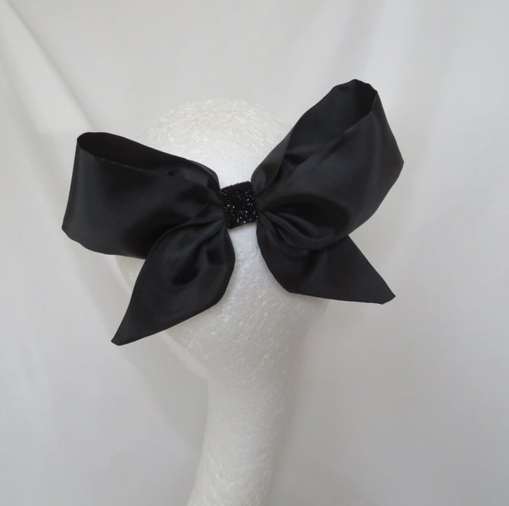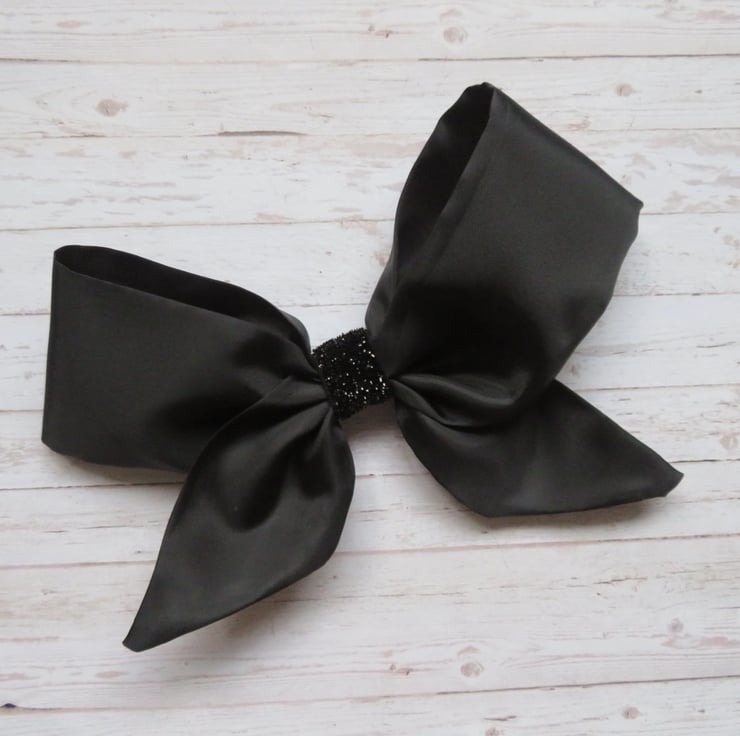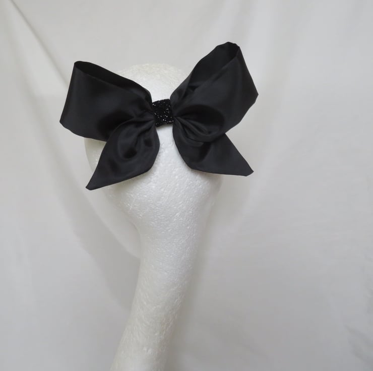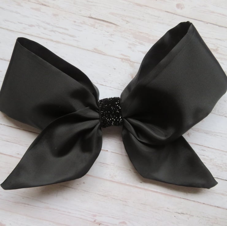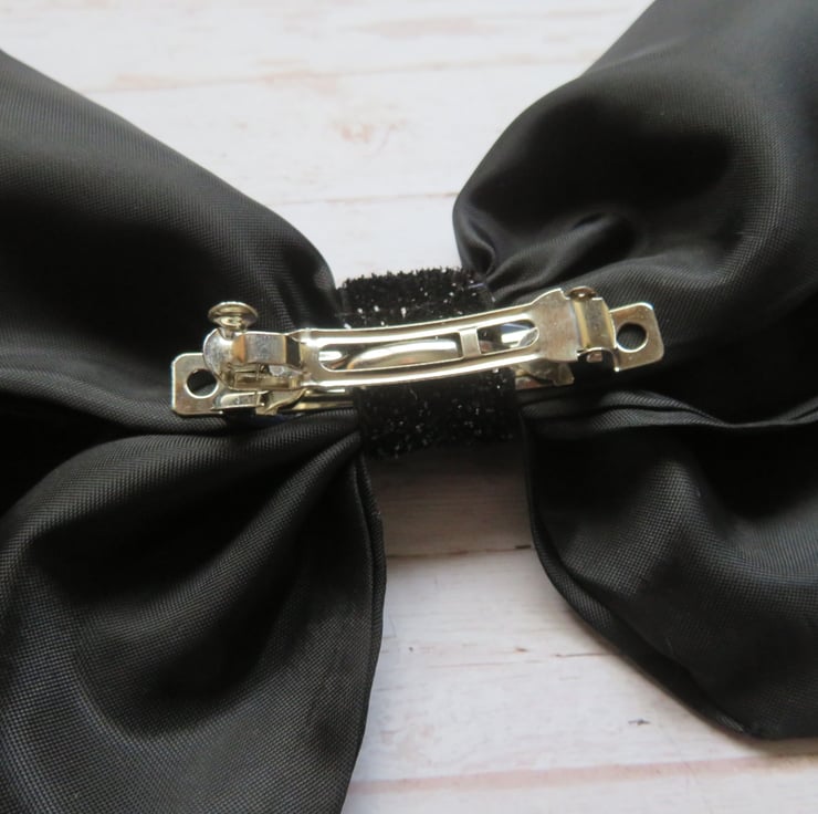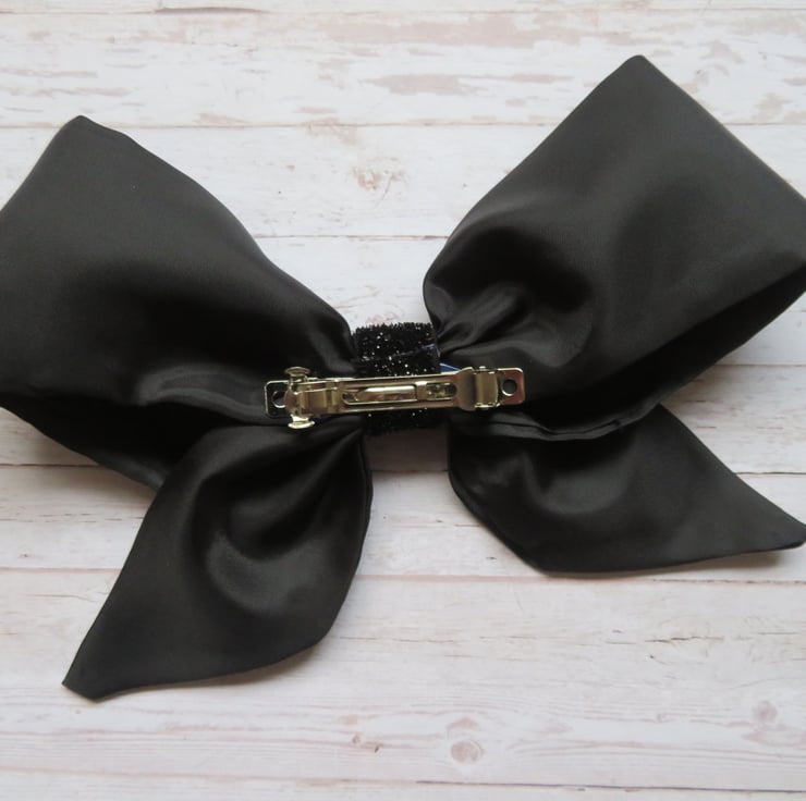 Finished with a black glitter elastic centre and attached into the hair with a small metal slide clip across the back.