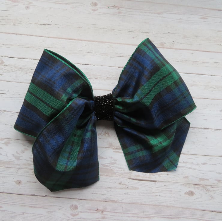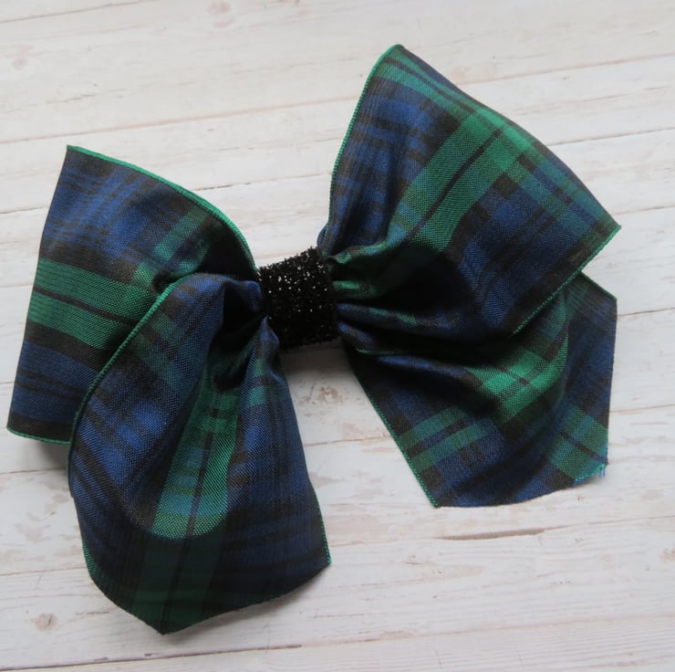 Created with a simple handmade French or Sailor bow made with extra wide (70mm) Black Watch tartan ribbon, which is quite thick and slightly stiff.