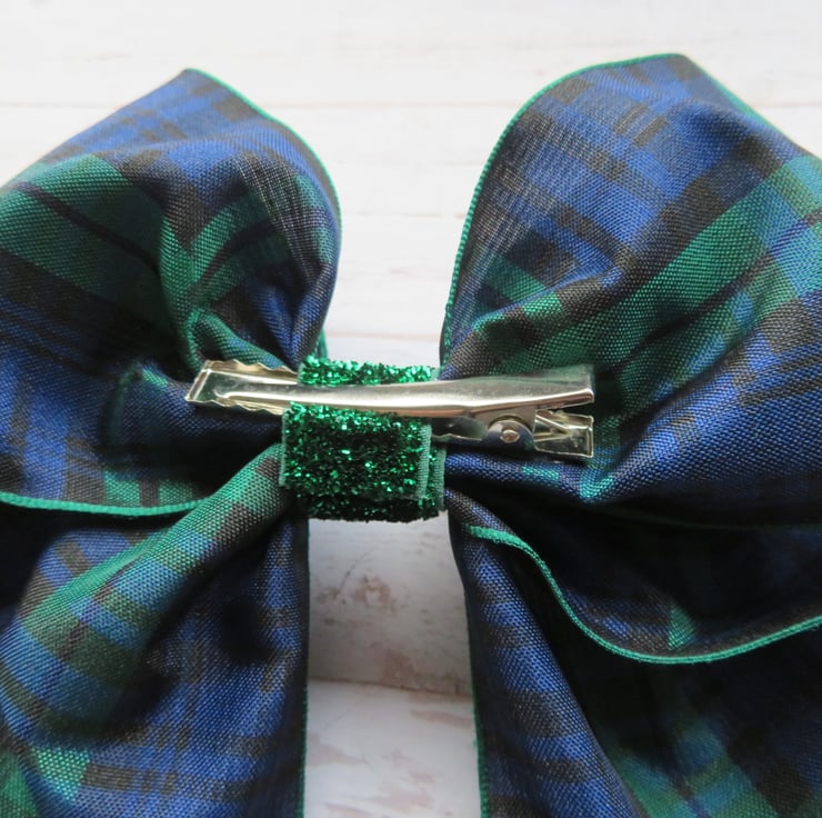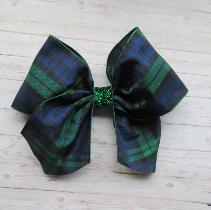 Created with a simple handmade French or Sailor bow made with extra wide (70mm) Black Watch tartan ribbon, which is quite thick and slightly stiff.