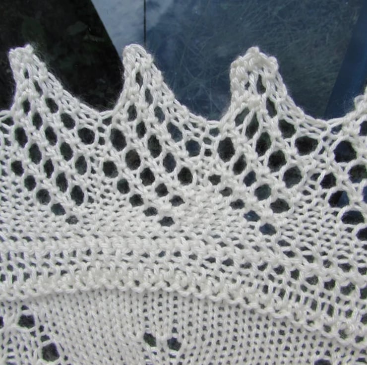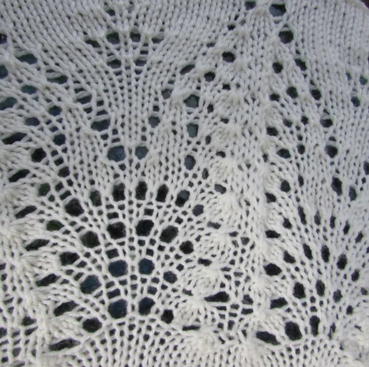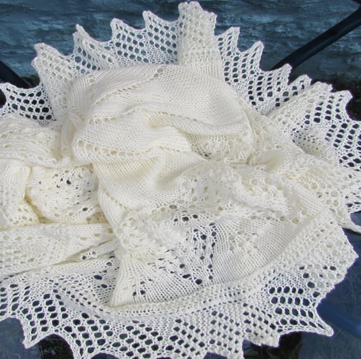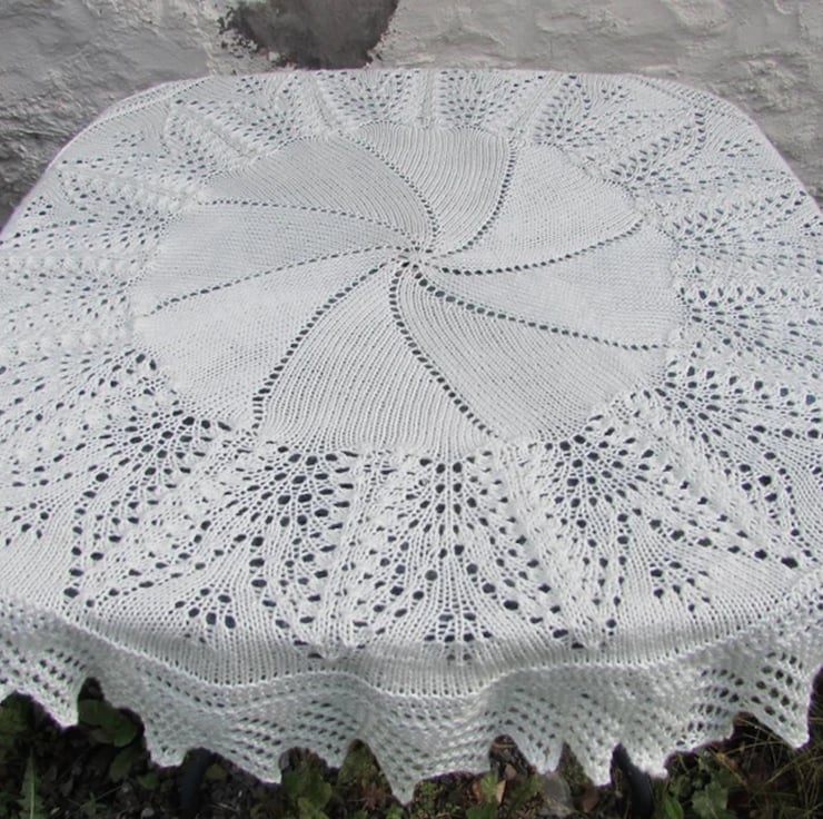 A very pretty circular soft blanket hand knitted with Deramores Non-Pilling Aran yarn which will keep your baby cosy and warm.