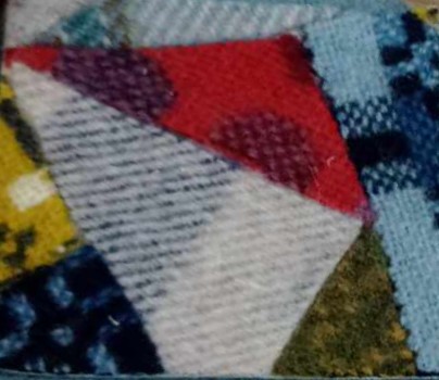 Two wool scrap collage pieces are provided, in differing sizes. The scraps used in each will vary, but will be similar to the photos.