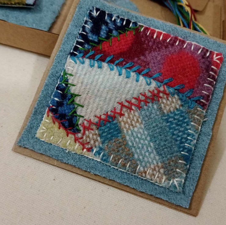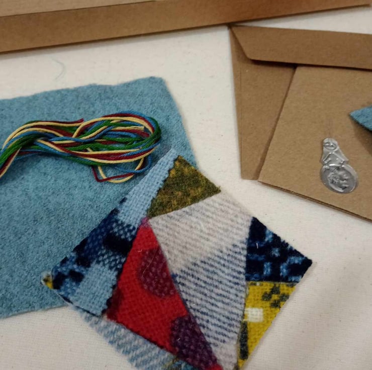 This is a sew it yourself kit to make two mini pictures using a patchwork of upcycled Welsh wool blanket scraps. Using a a number of decorative embroidery stitches, this is suitable for a confident beginner or intermediate sewist, with lots of detailed instructions provided.