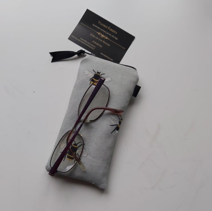 Charming little case for glasses or sunglasses in lovely Sophie Allport Bees fabric with contrasting lining. Lightly padded