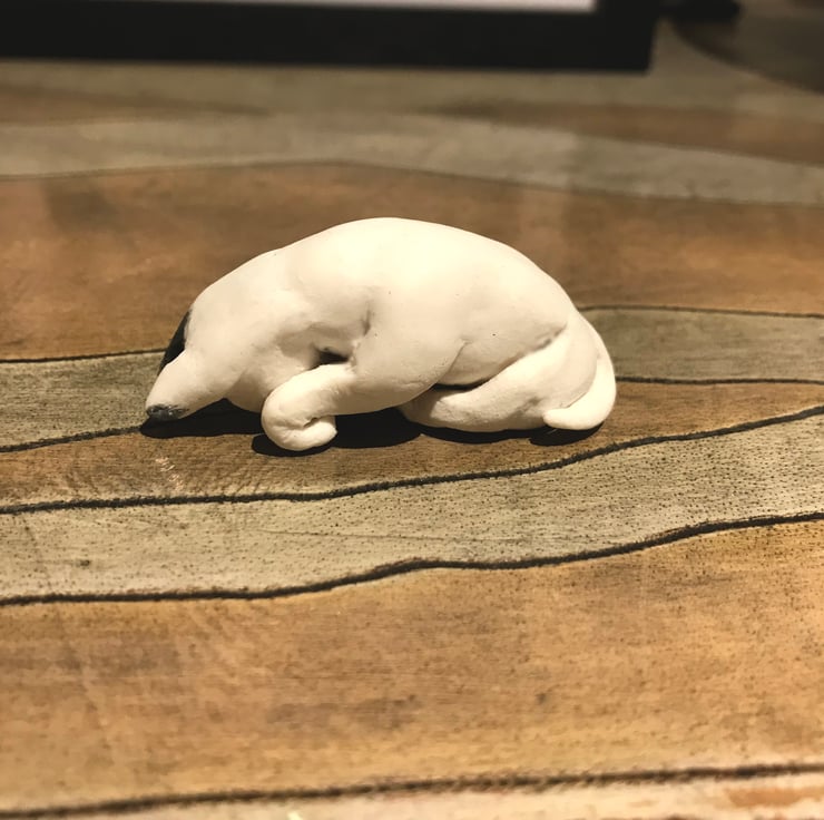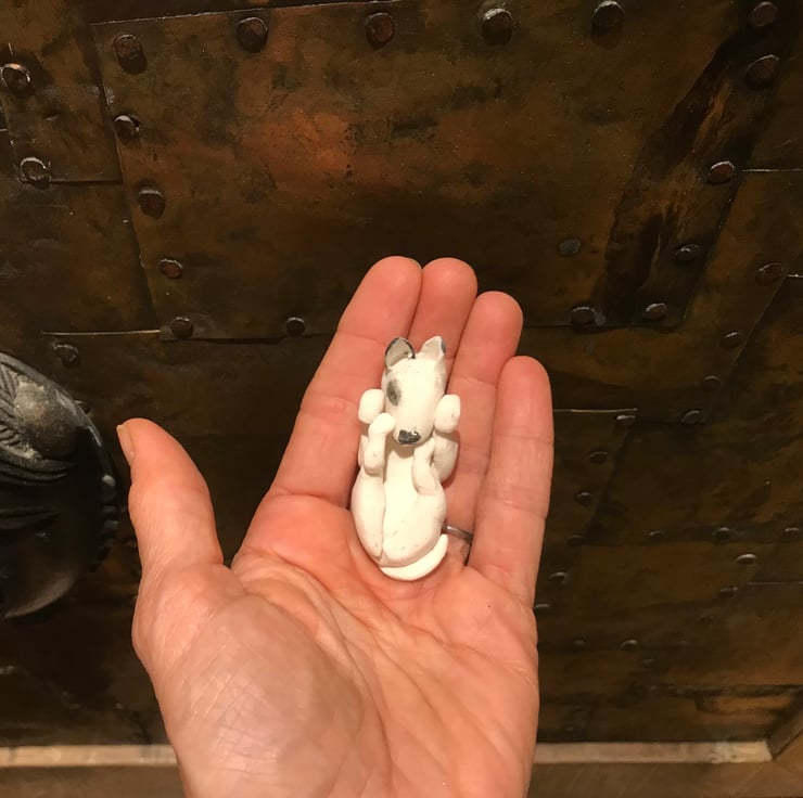 This little bully is in a full tuck with her head really tucked in. She features a black ear and measures roughly 6cm.
