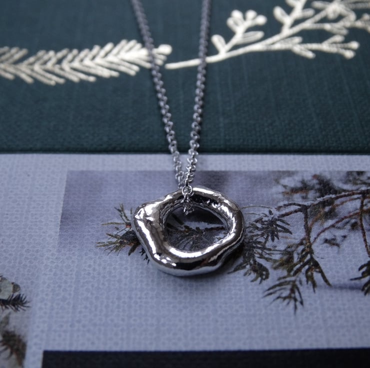 It has been created by melting off-cuts of recycled silver, ensuring that nothing in my studio goes to waste! It is also an entirely one-off piece as the free-form method of making these pendants means that no two are ever the same.