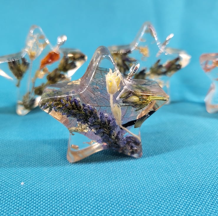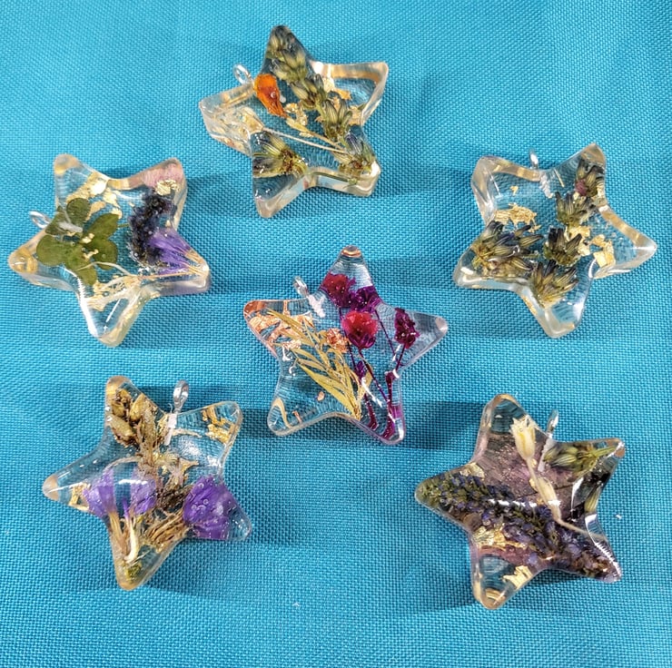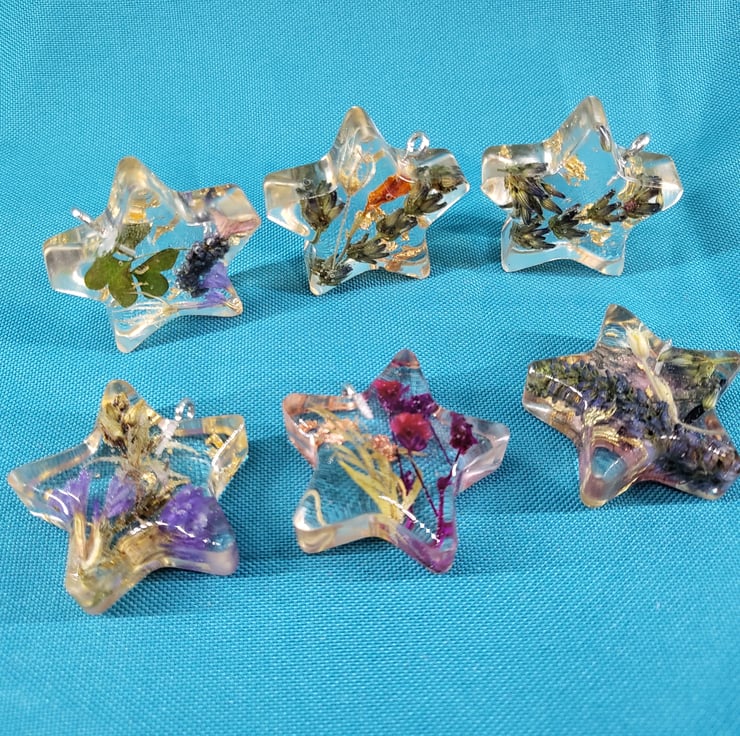 Set of 6 Little stars Christmas tree decoration. Natural dry flowers